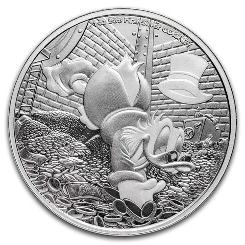 Produkt wykonano z wysokiej jakości srebra próby 0,999, o wadze 1 uncji trojańskiej i średnicy 39 mm. Edycja została ograniczona do 25 000 sztuk. Scrooge McDuck, znany ze swojego bajecznego majątku i zamiłowania do pierwszej zarobionej monety – „number one dime” – jest uosobieniem przedsiębiorczości i zaradności. Jednocześnie jego przygody uczą o sile więzi rodzinnych oraz ryzyku nadmiernej chciwości.