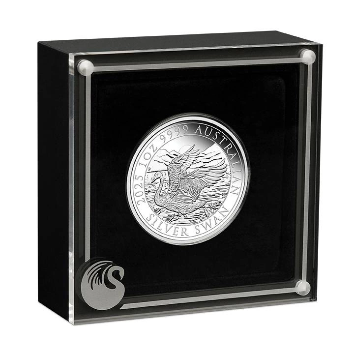 Srebrna moneta kolekcjonerska „Łabędź 1 uncja Srebra 2025 Proof (Perth Money Expo Anda Special)” to wyjątkowe wydanie przygotowane przez The Perth Mint z okazji targów Perth Money Expo ANDA Show. Stanowi dziewiątą odsłonę niezwykle popularnej serii, która każdego roku przyciąga uwagę kolekcjonerów z całego świata. Edycje z wizerunkiem australijskiego łabędzia charakteryzują się nie tylko artystyczną finezją, ale również ograniczonym nakładem, co czyni je cenionymi obiektami kolekcjonerskimi. Motyw łabędzia, obecnego w australijskich mokradłach, jeziorach i zatokach, stanowi symbol elegancji, wolności i dzikiej natury kontynentu. Edycja 2025 to kompozycja pełna spokoju, światła i symboliki – prawdziwa gratka dla miłośników numizmatyki.