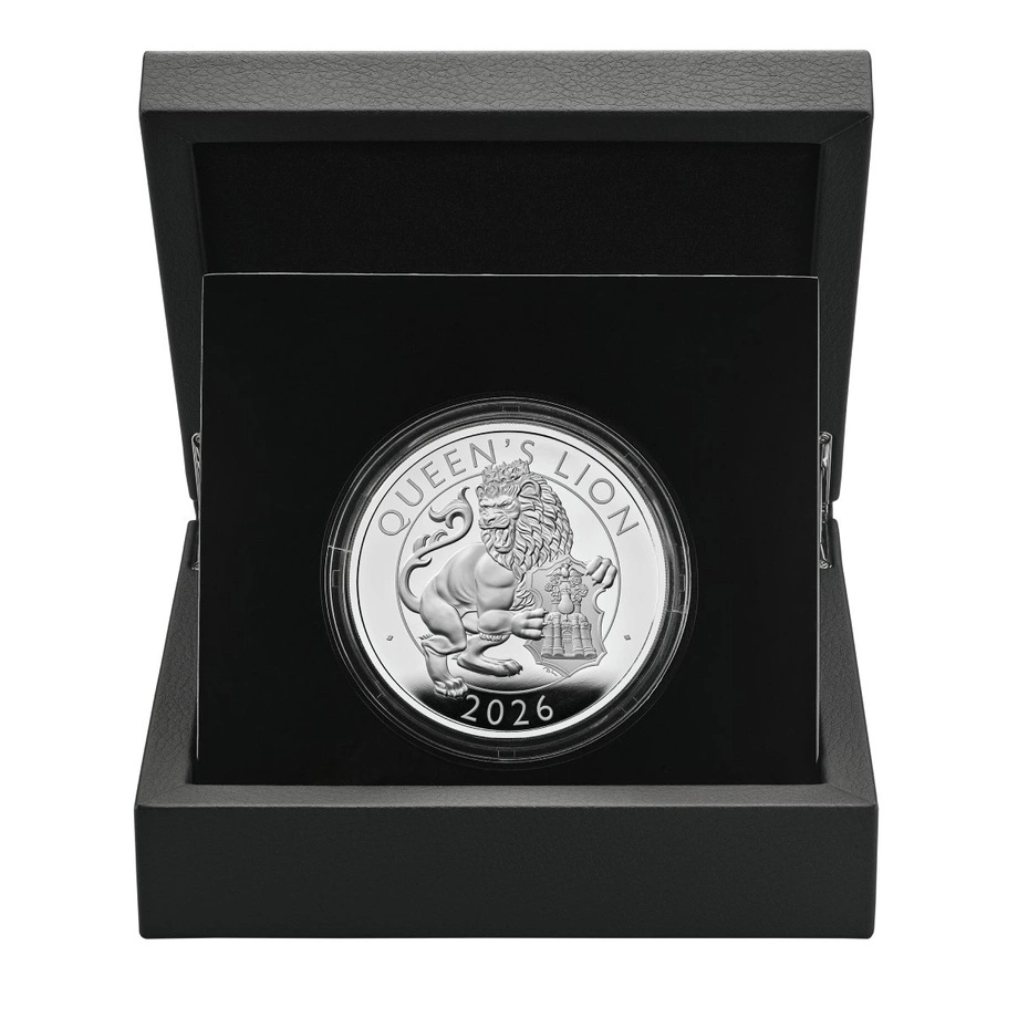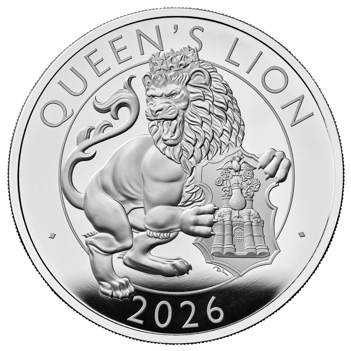 Rewers: Lew Królowej, dumny i potężny symbol, podtrzymuje tarczę z królewską odznaką Jane Seymour, symbolizującą jej pozycję i dziedzictwo Tudorów. Nad lwem znajduje się napis „QUEEN'S LION”, a pod nim rok emisji – 2026.