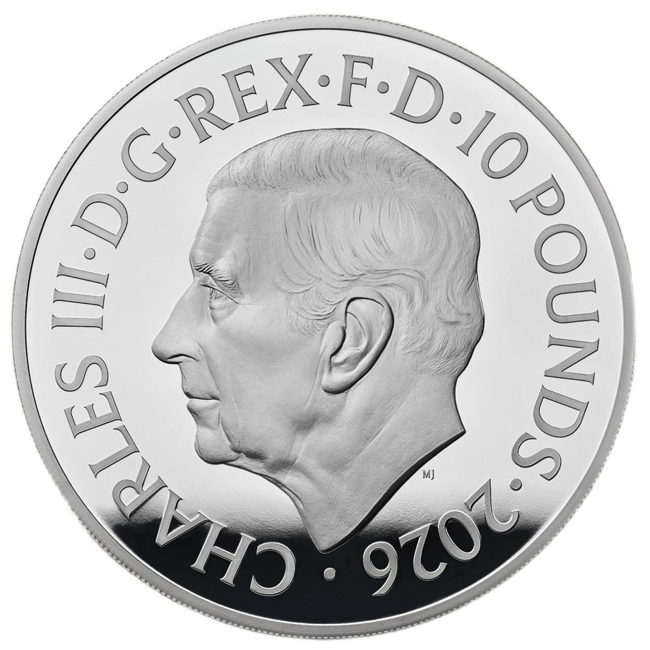 Awers: Podobizna króla Karola III otoczona jego imieniem, inskrypcjami królewskimi, wartością nominalną oraz rokiem emisji 2026.