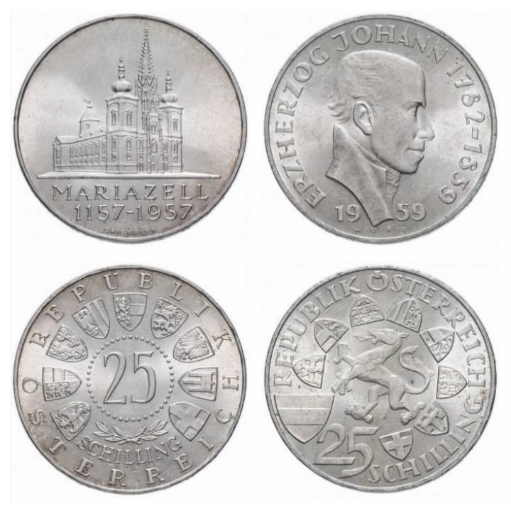 Austria: 25 Szylingów Moneta Srebrna Różne Roczniki