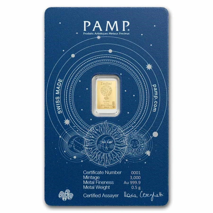 Sztabka Pamp Zodiac: Lew 0,5 grama złota to produkt inwestycyjny o indywidualnym charakterze, dedykowany osobom urodzonym pod znakiem Lwa (23 lipca – 22 sierpnia), które cenią astrologię i unikalny styl. Wykonana z czystego złota próby 999,9, waży 0,5 grama i posiada unikalny numer seryjny. Kolekcja Zodiac wyróżnia się eleganckim opakowaniem udekorowanym motywami gwiezdnych konstelacji oraz złotymi detalami.