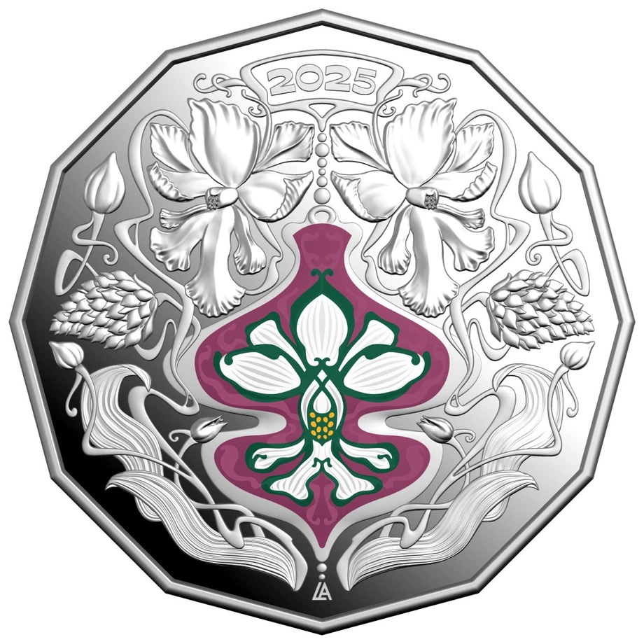 Christmas Decoration - Festive Floral kolorowany 50c Srebro 2025 Proof