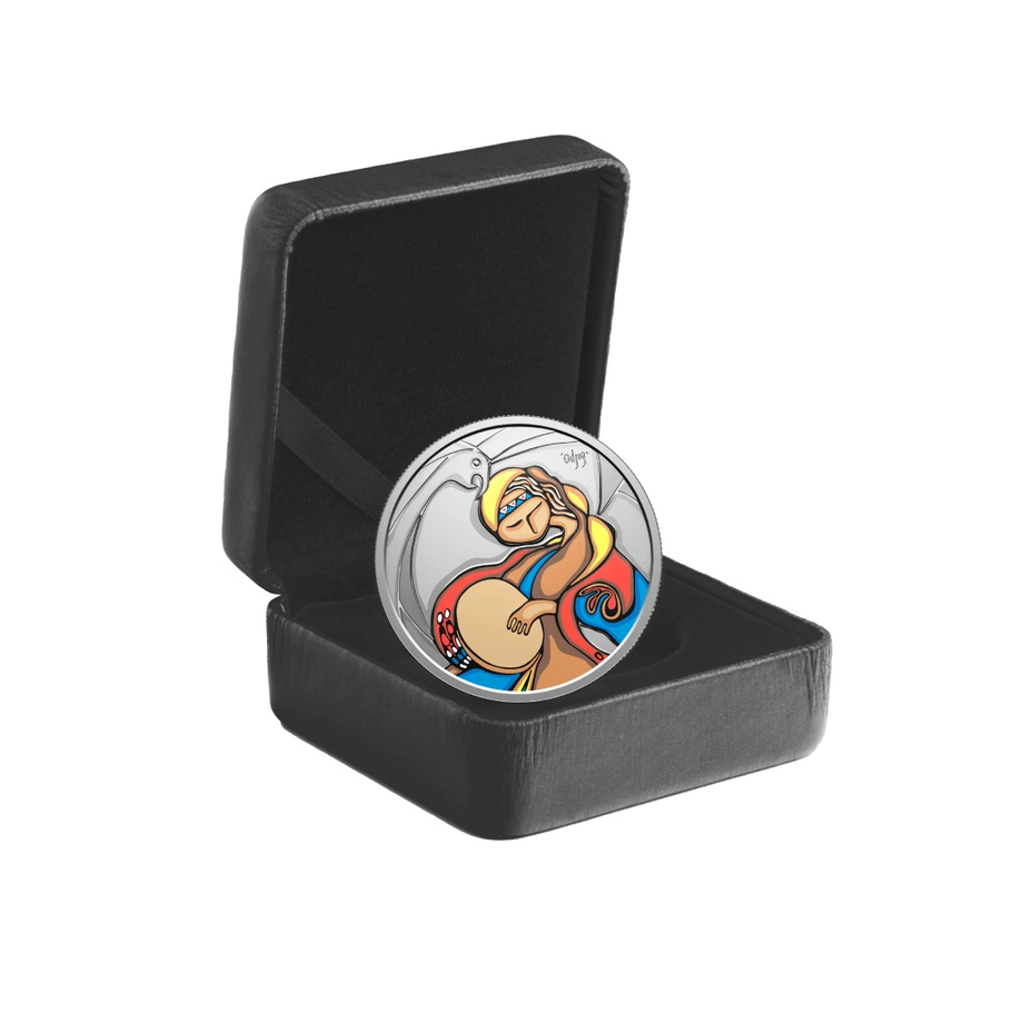 Royal Canadian Mint prezentuje srebrną monetę dedykowaną pamięci Daphne Odjig (1919–2016) – ikony sztuki rdzennych mieszkańców Kanady i jednej z najważniejszych artystek XX wieku. Jej twórczość obejmowała zarówno delikatne rysunki, jak i monumentalne płótna pełne żywych barw. W 2025 roku została pierwszą przedstawicielką First Nations, której dzieło znalazło się na kanadyjskiej monecie obiegowej. Niniejszy egzemplarz z czystego srebra próby 99,99% rozwija projekt znany z dwudolarówki, poszerzony do średnicy 38 mm i wzbogacony detalami z obrazu „Folk Singer”.