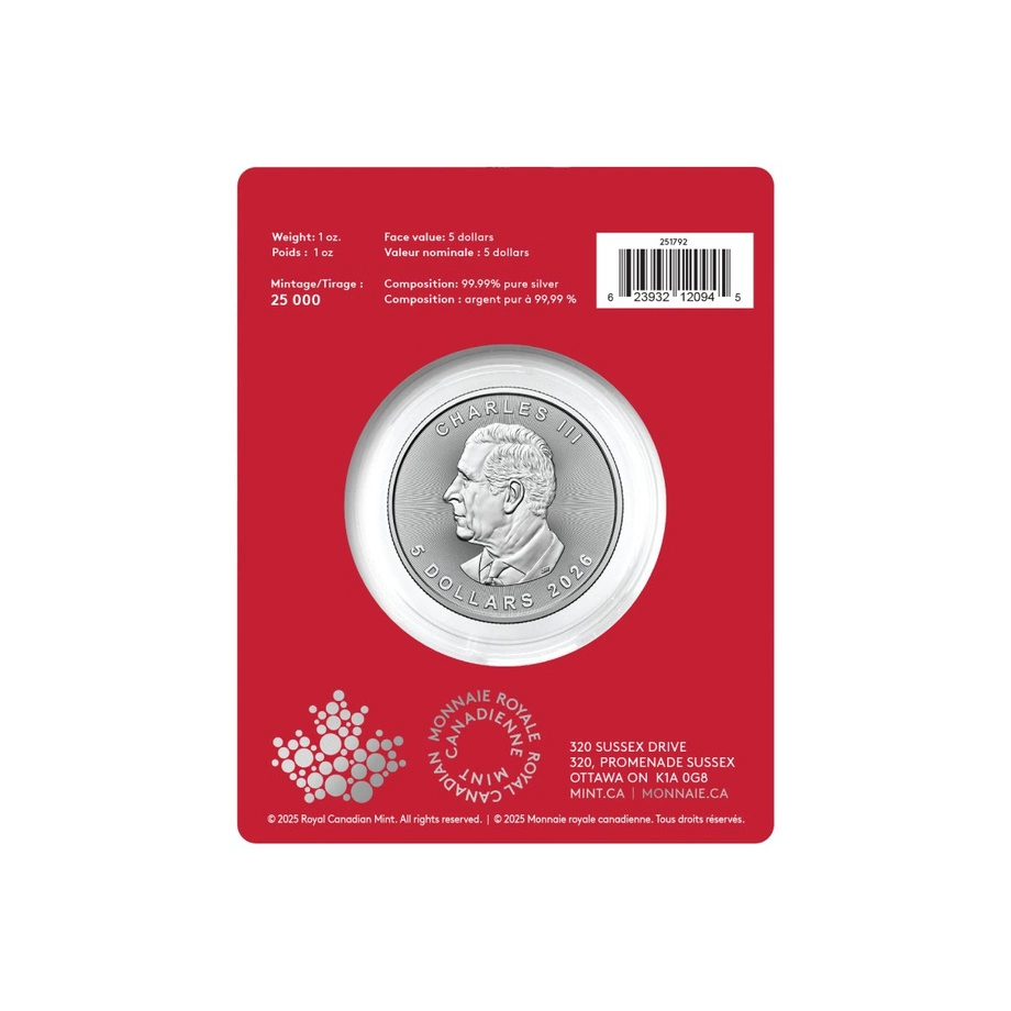 Moneta Kanadyjski Liść Klonowy Treasured 1 uncja Srebra 2025 Year of the Horse Privy Mark to elegancka propozycja z serii Premium Bullion, wyróżniająca się motywem Roku Konia – znaku zodiakalnego w tradycji chińskiej, symbolizującego siłę, wytrwałość i rozwój. Wykonana z jednej uncji srebra najwyższej próby (99,99%) stanowi nie tylko doskonały prezent, ale także wartościowy dodatek do każdej kolekcji czy portfela inwestycyjnego.