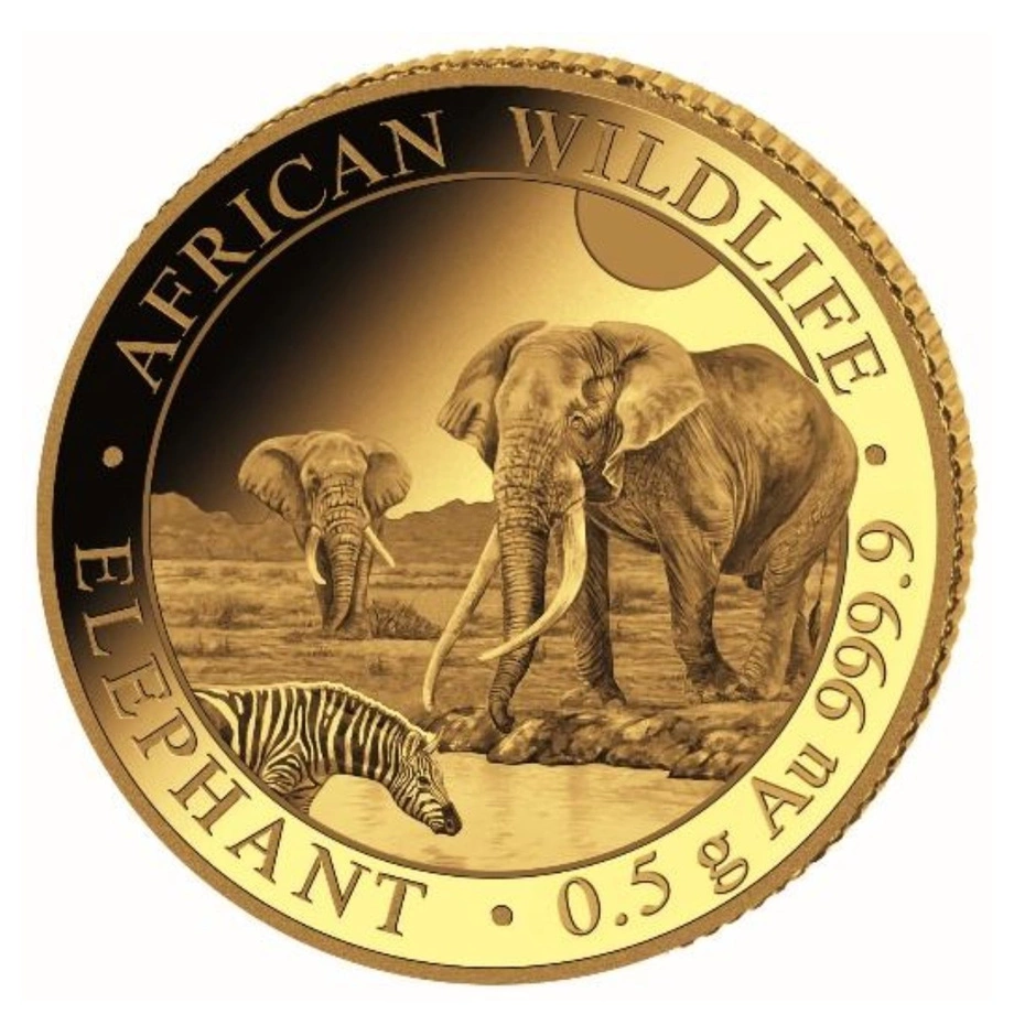 Moneta o masie 0,5 grama i średnicy 16 mm została wybita przez renomowaną Bawarską Mennicę Państwową (Bayerisches Hauptmünzamt) w Monachium, kontynuując tradycję bicia złotych monet sięgającą XII wieku. Seria African Wildlife, zapoczątkowana w 1999 roku pod patronatem Zambii, od 2004 roku ukazuje swoje edycje dzięki oficjalnemu wsparciu Republiki Somalii. Każdy rocznik przedstawia nowe ujęcie słonia afrykańskiego – symbolu siły i dostojności – co przyciąga uwagę zarówno kolekcjonerów, jak i inwestorów poszukujących różnorodnych nominałów.