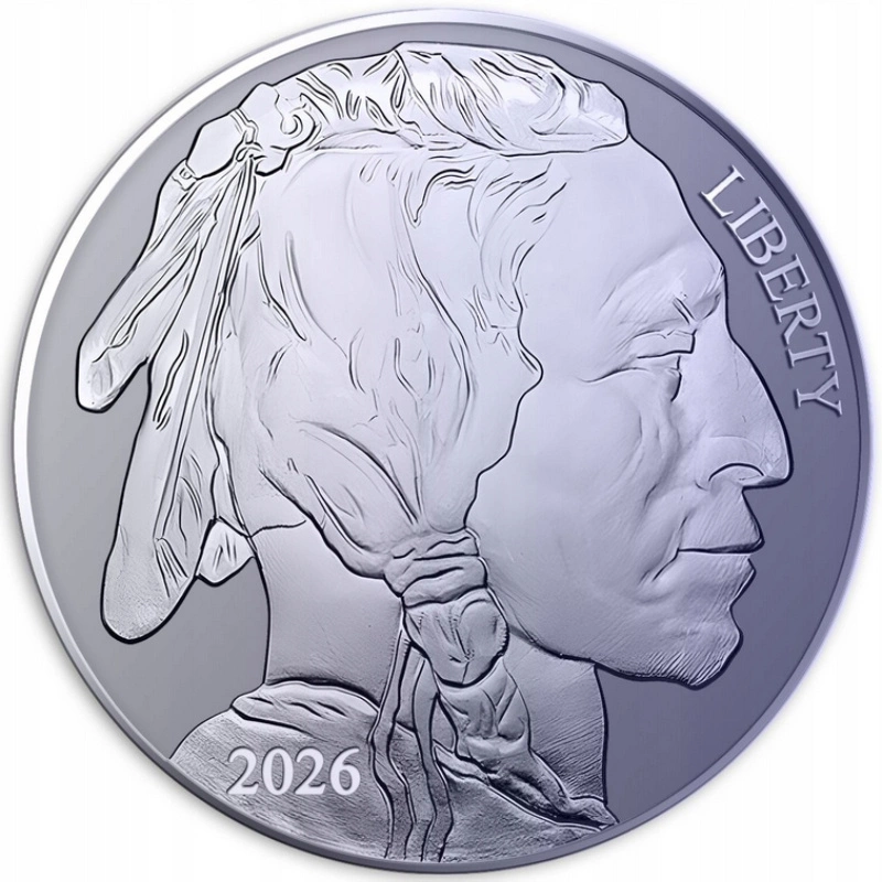 Awers: wizerunek Indianina z napisem „LIBERTY” oraz datą emisji 2026, inspirowany tradycyjnym stylem Buffalo Nickel.