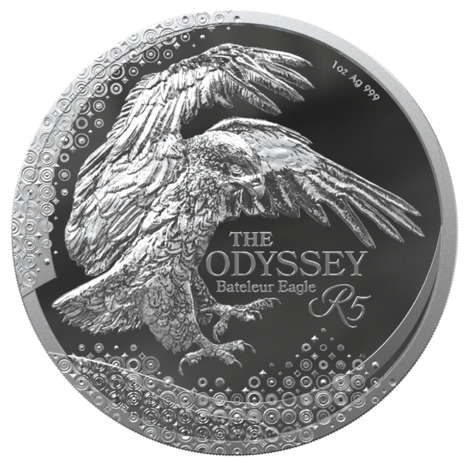 Rewers ukazuje orła bateleur w locie – jego dynamiczna poza i precyzyjnie ukazane pióra oddają majestat tego afrykańskiego drapieżnika. Kompozycję uzupełnia nazwa serii "The Odyssey Of The Sky" oraz oznaczenie wartości – 5 randów. Projekt ten stanowi doskonałe połączenie walorów artystycznych i technicznych.