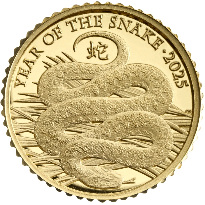Royal Mint Lunar: Rok Węża 1/40 uncji Złota 2025 Proof to niezwykle precyzyjnie wykonana moneta, będąca częścią prestiżowej serii inspirowanej chińskim kalendarzem księżycowym. Rok 2025 związany jest z wężem, szóstym zwierzęciem w cyklu zodiakalnym, symbolizującym mądrość, refleksję i duchowy rozwój. W kulturze chińskiej osoby urodzone w roku węża postrzegane są jako filozoficzne, cierpliwe i skłonne do głębokich rozważań, co nadaje tej emisji wyjątkowy kontekst kulturowy.