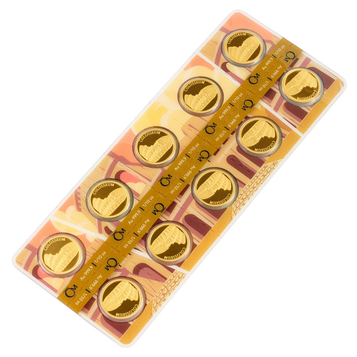Niue: New Seven Wonders of the World – Colosseum 10 x 1/10 uncji Złota 2025 Proof to unikalny zestaw dziesięciu złotych monet, który oddaje hołd jednemu z najważniejszych zabytków starożytnego Rzymu – Koloseum. Każda moneta zawiera 1/10 uncji złota próby 999,9 i została wybita w jakości menniczej Proof, co podkreśla jej kolekcjonerski charakter.