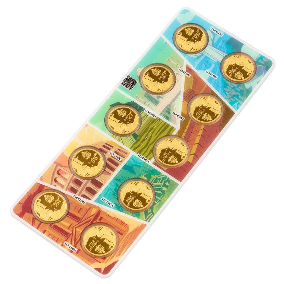 Zestaw zawiera dziesięć monet o średnicy 16 mm i wartości nominalnej 5 DOLLARS (NZD), umieszczonych w eleganckim blistrze ekspozycyjnym. Całość stanowi znakomitą propozycję dla kolekcjonerów ceniących złoto i dziedzictwo kulturowe świata.
