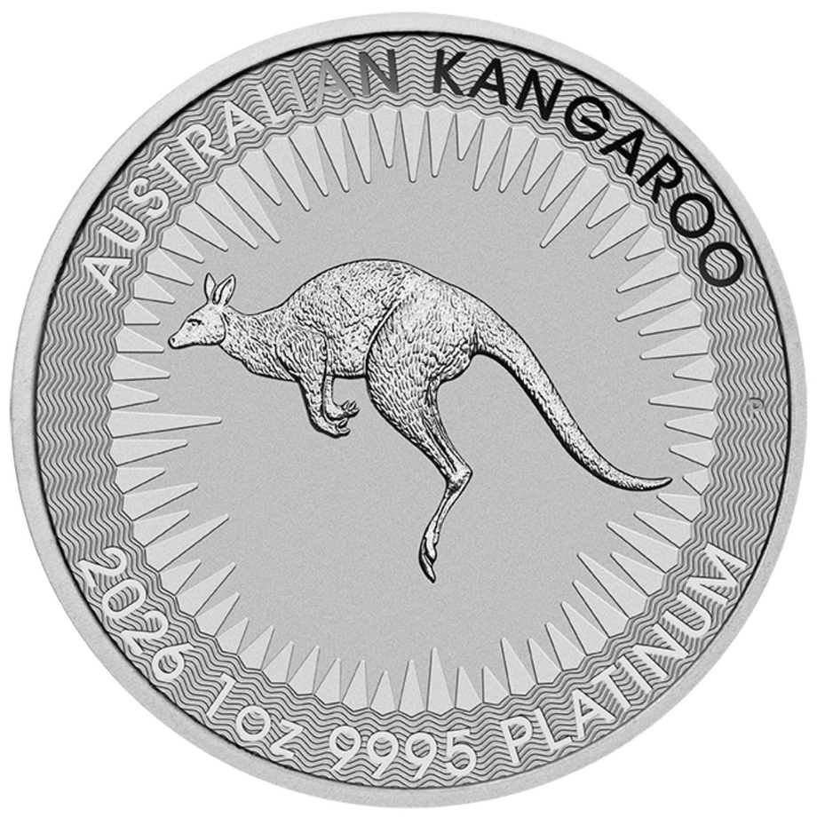 Rewers zawiera klasyczny wizerunek kangura otoczonego promieniami słońca. W górnej części widnieje napis AUSTRALIAN KANGAROO, natomiast u dołu znajdują się rok emisji 2026, próba oraz masa platyny, co podkreśla jej inwestycyjną funkcję.