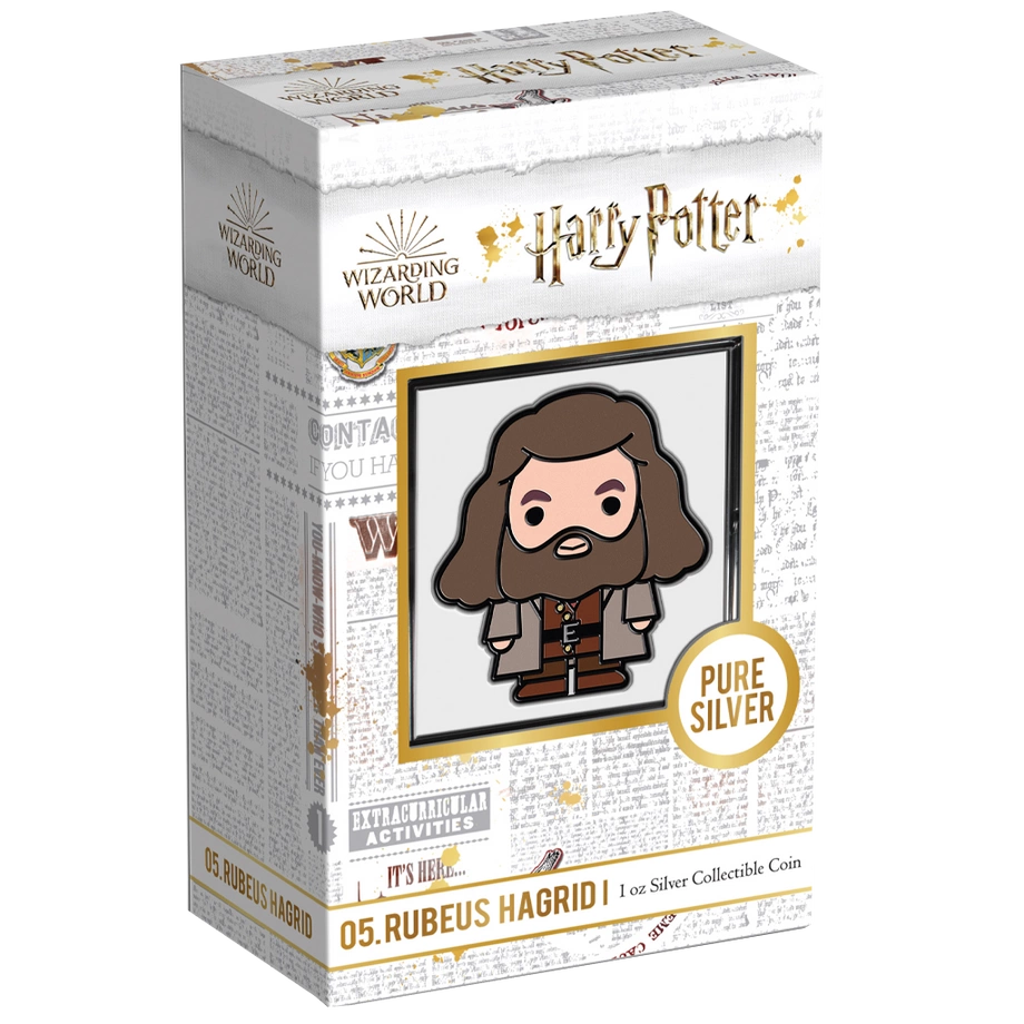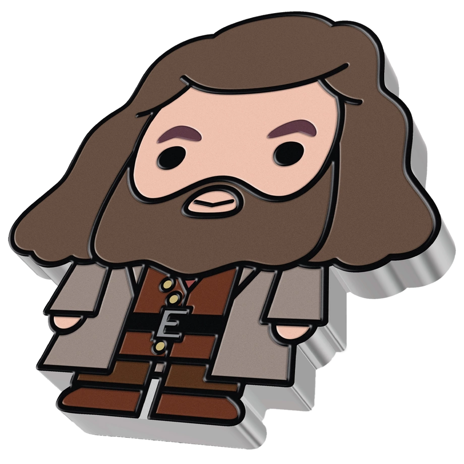 Hagrid Chibi Coin kolorowany 1 uncja Srebra 2020 Proof to moneta z serii Harry Potter – Chibi Coins. Upamiętnia Rubeusa Hagrida przedstawionego w estetyce chibi, z dużą głową i relatywnie małym tułowiem, co nadaje projektowi urokliwy i zabawny charakter. Została wybita przez New Zealand Mint z jednej uncji srebra próby 99,9% w jakości proof. Emisja jest limitowana do 2 000 egzemplarzy na całym świecie, a każda sztuka dostarczana jest w oryginalnym pudełku wraz z certyfikatem autentyczności.