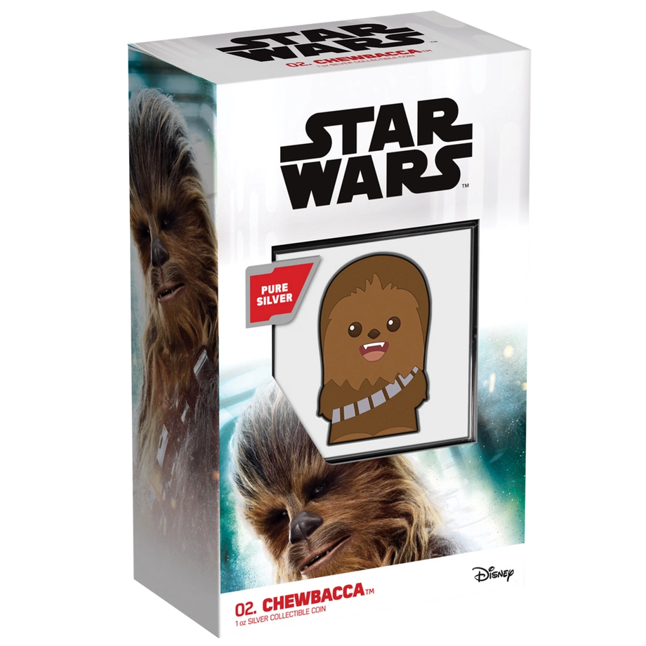 Seria Star Wars obejmuje kultowe filmy science fiction stworzone przez George'a Lucasa, które podbiły serca milionów odbiorców na całym globie. Chewbacca, wierny towarzysz Hana Solo i członek załogi Sokoła Millennium, należy do najbardziej rozpoznawalnych bohaterów sagi. Moneta Chibi umożliwia kolekcjonerom oraz fanom uhonorowanie tej postaci w świeżej, nowatorskiej formie.