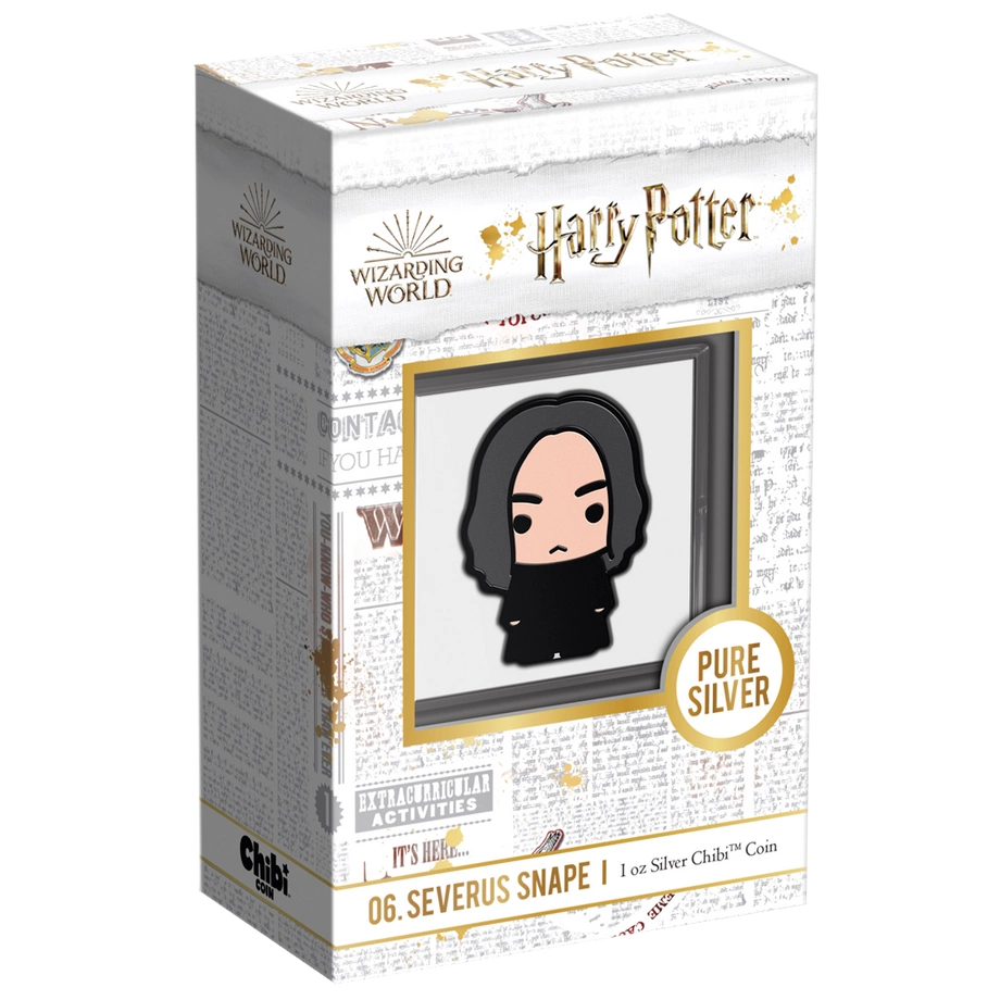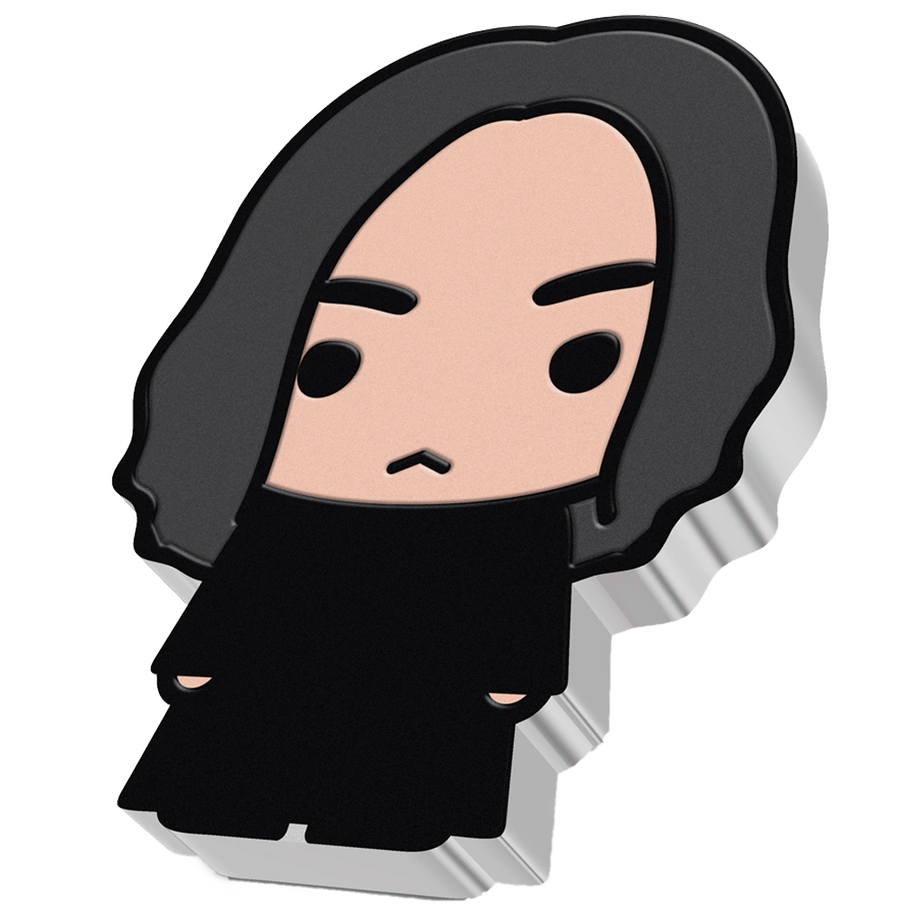 Snape Chibi Coin kolorowany 1 uncja Srebra 2021 Proof to pozycja z serii Harry Potter – Chibi Coins. Numizmat przedstawia Severusa Snape’a w konwencji Chibi, czyli z przerośniętą głową i proporcjonalnie mniejszym ciałem, co nadaje mu urokliwy, zabawny charakter. Został wybity z jednej uncji srebra próby 99,9% w jakości proof przez New Zealand Mint. Globalny nakład wynosi 2 000 egzemplarzy, a każda sztuka dostarczana jest w oryginalnym pudełku wraz z certyfikatem autentyczności.