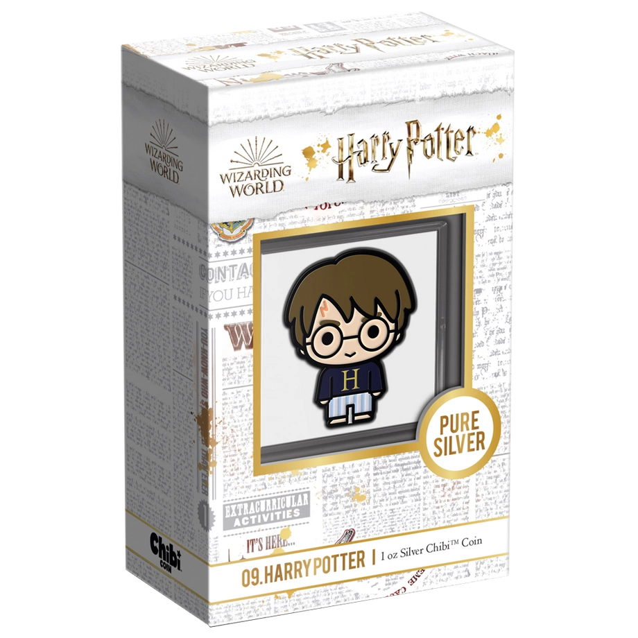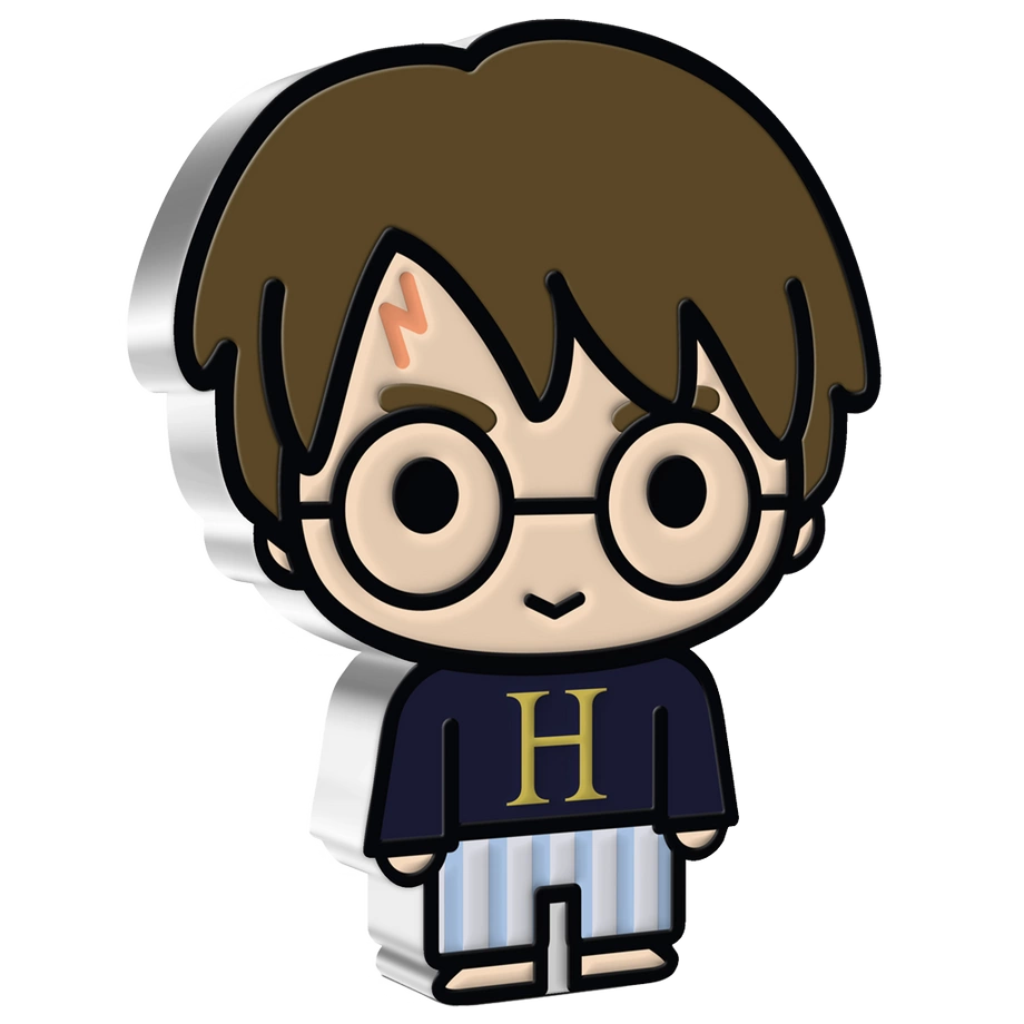Harry Potter Pyjama Chibi Coin kolorowany 1 uncja Srebra 2021 Proof to numizmat z linii Harry Potter – Chibi Coins. Projekt ukazuje Harry’ego Pottera w rozpoznawalnej estetyce chibi — z dużą głową i proporcjonalnie mniejszym ciałem — co nadaje mu urokliwy, figlarny wygląd. W tej odsłonie bohater występuje w piżamie, podkreślając lekki i sympatyczny charakter monety. Egzemplarz został wybity przez New Zealand Mint z jednej uncji srebra próby 99,9% w jakości proof. Światowy nakład liczy 2 000 sztuk, a każda moneta dostarczana jest w oryginalnym pudełku wraz z certyfikatem autentyczności.