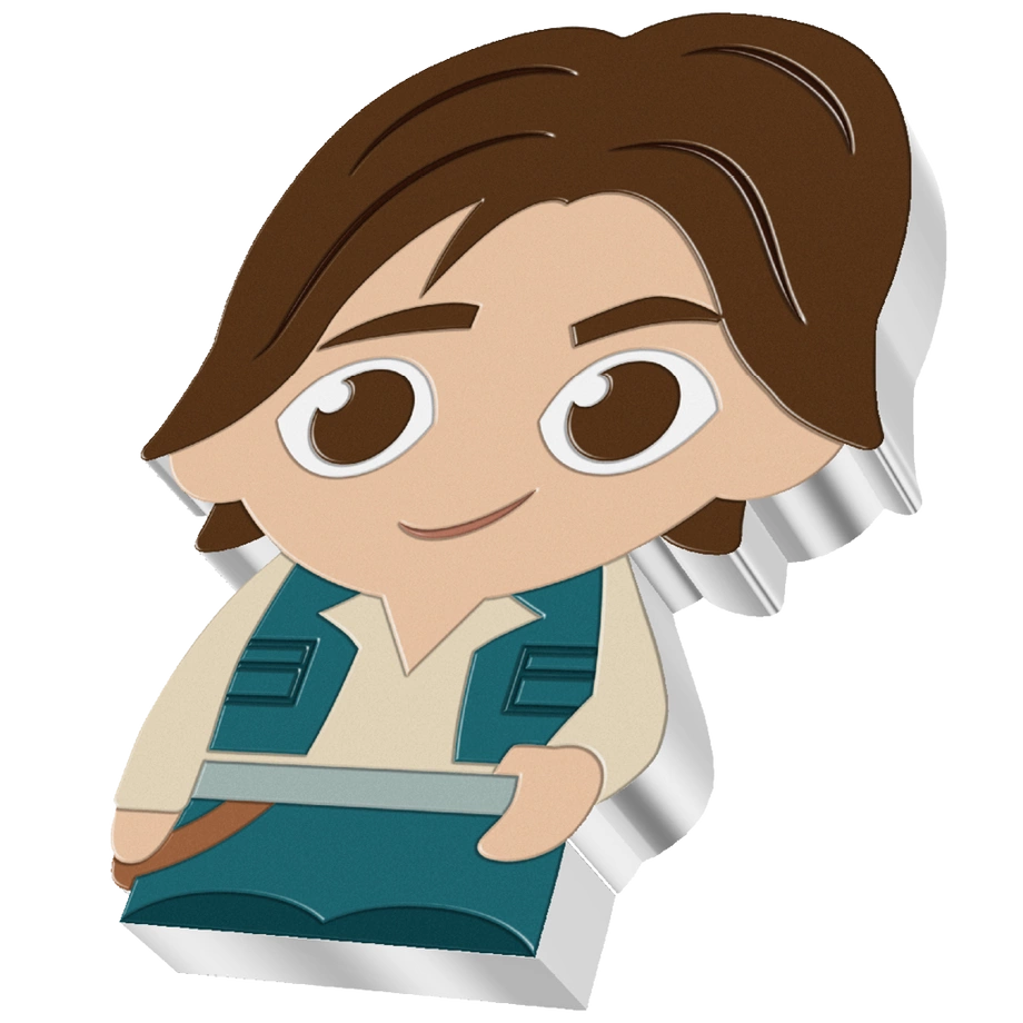 Rewers przedstawia Hana Solo w estetyce chibi, z typowymi, przerysowanymi proporcjami, które podkreślają jego zabawny i uroczy wygląd, czyniąc monetę szczególnie atrakcyjną dla fanów Star Wars i kolekcjonerów.
