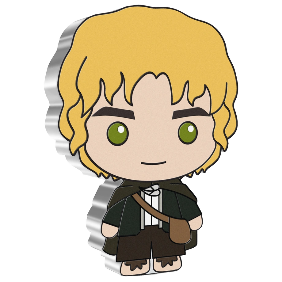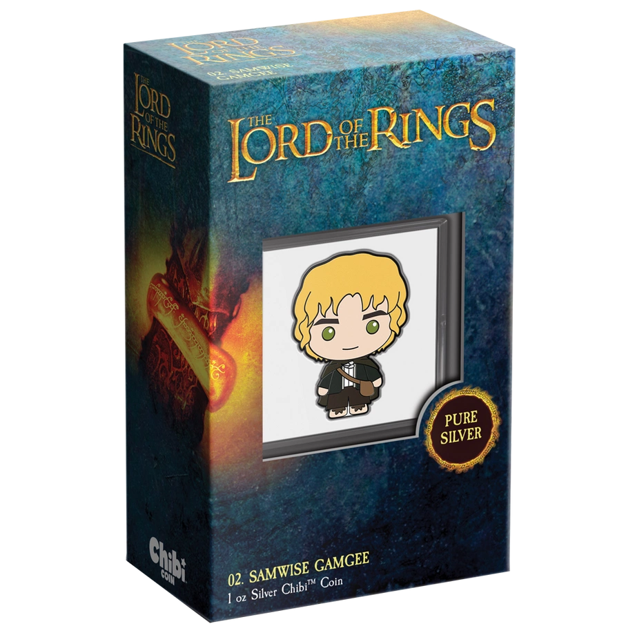 Samwise Chibi Coin kolorowany 1 uncja Srebra 2021 Proof to numizmat wprowadzony w ramach serii The Lord of the Rings – Chibi Coins. Przedstawia Samwise’a Gamgee w stylistyce Chibi, z proporcjonalnie dużą głową i mniejszym ciałem, co nadaje postaci ujmujący, zabawny charakter. Monetę wybito z jednej uncji czystego srebra próby 999 w jakości proof przez New Zealand Mint. Emisja została ograniczona do 2 000 sztuk na cały świat, a każdy egzemplarz dostarczany jest w oryginalnym opakowaniu z dołączonym certyfikatem autentyczności.