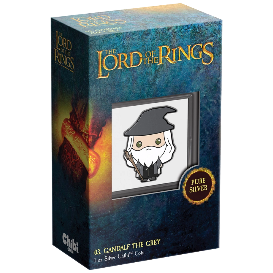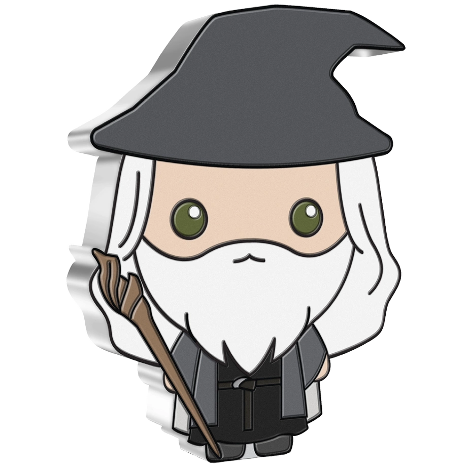 Gandalf Chibi Coin kolorowany 1 uncja Srebra 2021 Proof to numizmat wydany w ramach serii The Lord of the Rings – Chibi Coins. Projekt ukazuje Gandalfa w estetyce Chibi — z dużą głową i stosunkowo mniejszym ciałem — nadając postaci uroczy, humorystyczny charakter. Monetę wybito z jednej uncji czystego srebra próby 999 w jakości proof przez New Zealand Mint. Emisja jest ograniczona do 2 000 egzemplarzy na całym świecie, a każdy egzemplarz dostarczany jest w oryginalnym pudełku z dołączonym certyfikatem autentyczności.