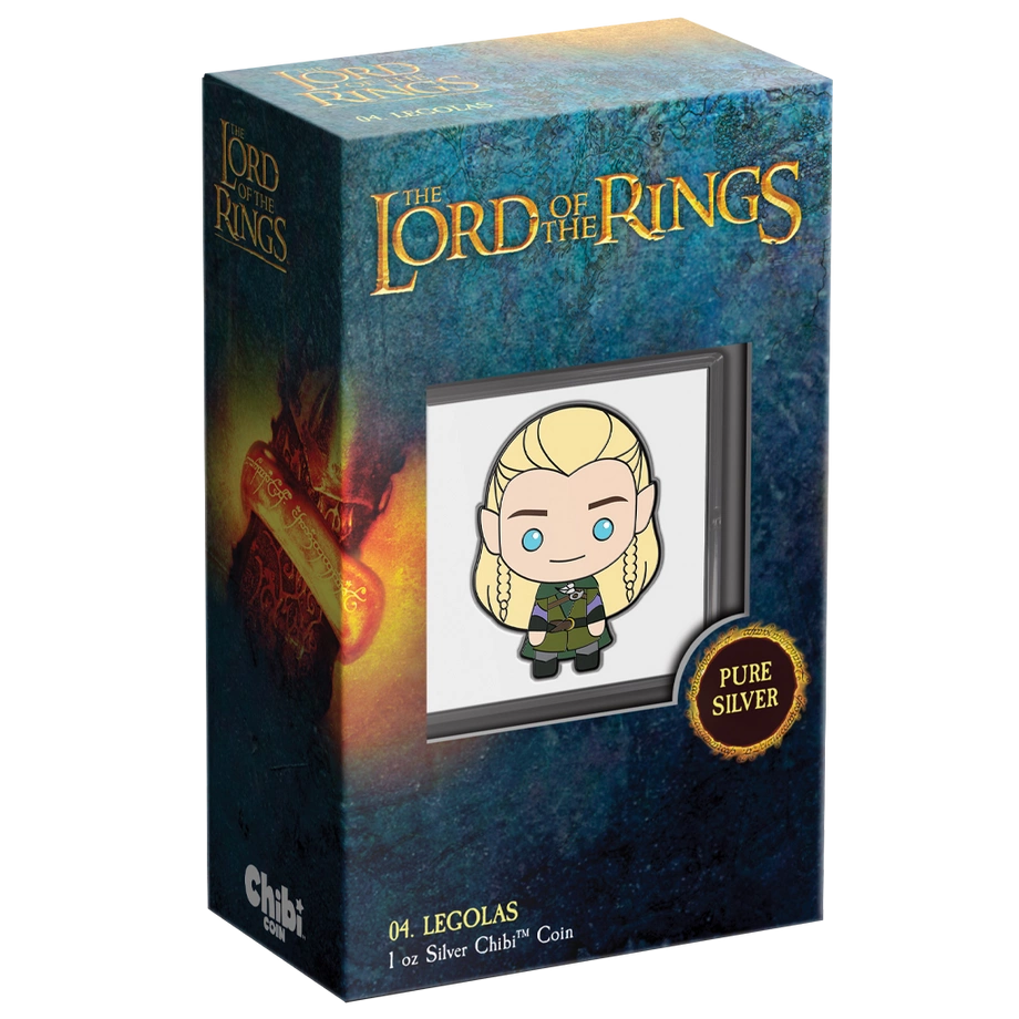 Legolas Chibi Coin kolorowany 1 uncja Srebra 2021 Proof to moneta z serii The Lord of the Rings – Chibi Coins. Ukazuje Legolasa w estetyce Chibi, wyróżniającej się dużą głową i relatywnie małym tułowiem, co nadaje projektowi urokliwy i figlarny charakter. Numizmat wybity został z jednej uncji czystego srebra próby 999 w jakości proof przez New Zealand Mint. Nakład ograniczono do 2 000 sztuk na całym świecie, a każdy egzemplarz dostarczany jest w oryginalnym pudełku wraz z certyfikatem autentyczności.