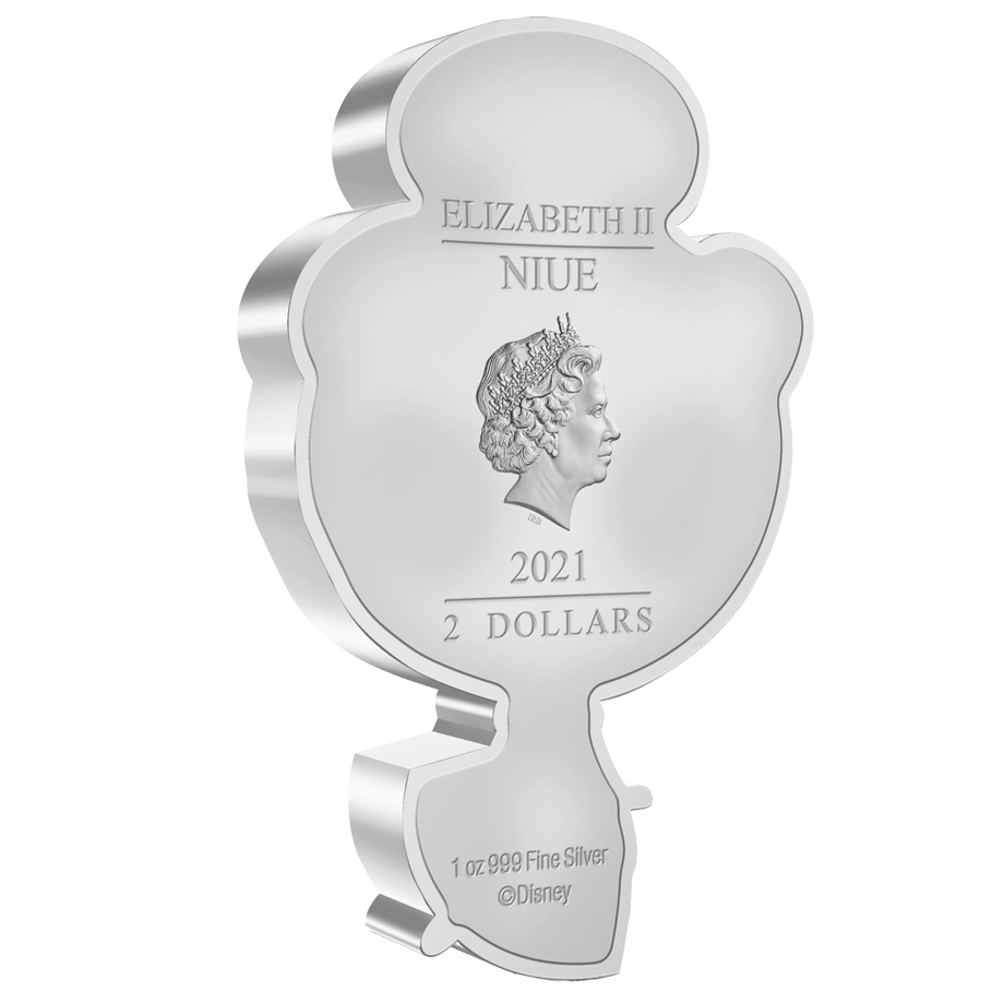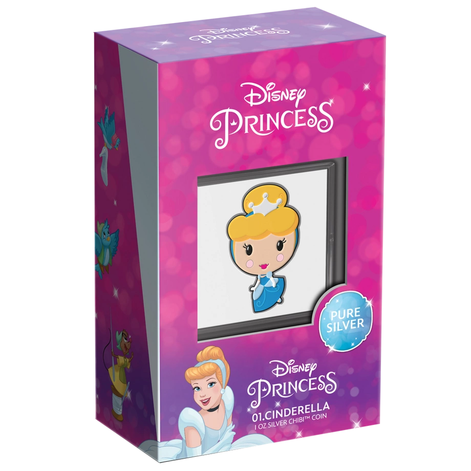 Cinderella Chibi Coin kolorowany 1 uncja Srebra 2021 Proof to moneta należąca do serii Disney – Chibi Coins. Przedstawia Kopciuszka w estetyce chibi, z dużą głową i relatywnie małym korpusem, co nadaje wizerunkowi wdzięku i lekko humorystycznego charakteru. Egzemplarz wybito z jednej uncji srebra próby 99,9% w jakości proof przez New Zealand Mint. Nakład ograniczono do 2 000 sztuk na całym świecie, a każda moneta trafia do kolekcjonera w oryginalnym pudełku wraz z certyfikatem autentyczności.