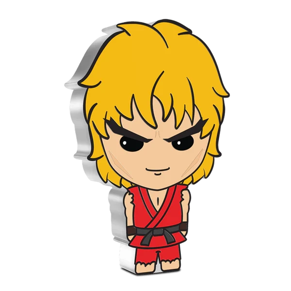 Rewers ukazuje Ken Masters w stylistyce Chibi, w charakterystycznym stroju i z detalami nawiązującymi do gry Street Fighter. Uproszczone proporcje oraz wyrazista ekspresja podkreślają osobowość bohatera, czyniąc monetę szczególną pozycją dla kolekcjonerów.