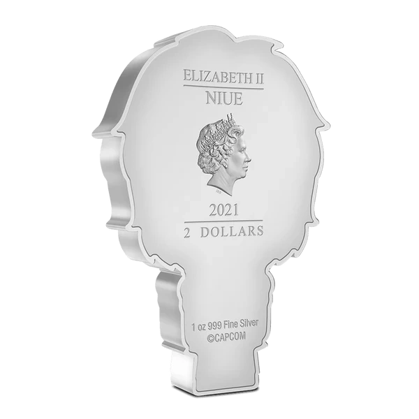 Niue: Street Fighter - Ken Masters Chibi Coin kolorowany 1 uncja Srebra 2021 Proof to kolekcjonerska moneta poświęcona kultowej postaci Ken Masters z serii gier Street Fighter. Przedstawia Kena w stylu Chibi, z dużą głową i skróconymi proporcjami sylwetki, co nadaje mu urokliwy i dynamiczny charakter. Wybita z jednej uncji srebra próby 999 w jakości proof, zachwyca wyrazistymi detalami i efektownym połyskiem. Każdy egzemplarz dostarczany jest w oryginalnym opakowaniu z dołączonym certyfikatem autentyczności.