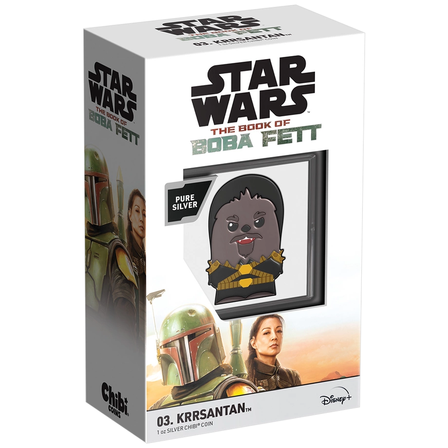 Seria Star Wars nawiązuje do kultowych filmów oraz bohaterów z uniwersum Gwiezdnych Wojen, od lat gromadzących miliony fanów na całym świecie. Krrsantan, jako postać imponująca i nieprzeciętna, zdobył popularność wśród miłośników sagi, a moneta Chibi pozwala kolekcjonerom w nowatorski sposób uhonorować jego charakter.