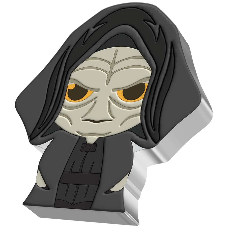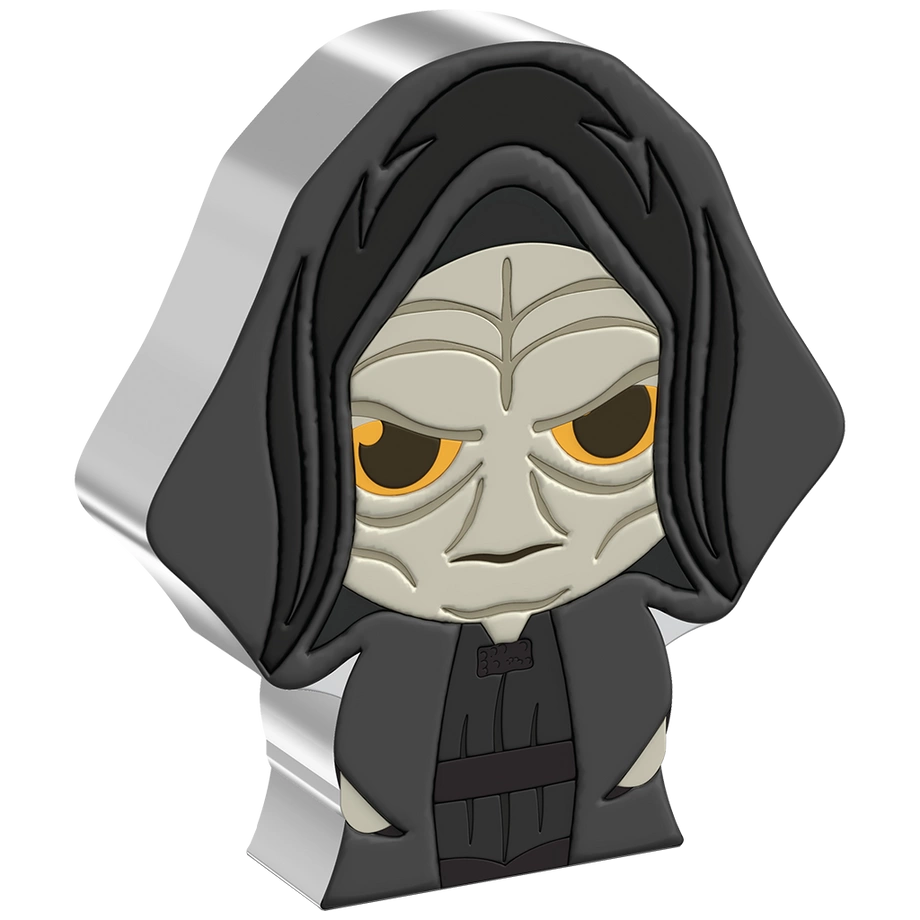 Emperor Palpatine Chibi Coin kolorowany 1 uncja Srebra 2022 Proof to numizmat należący do serii Star Wars – Chibi Coins. Ukazuje Imperatora Palpatine’a w konwencji Chibi, z proporcjonalnie dużą głową i mniejszym ciałem, co nadaje wizerunkowi figlarnego, urokliwego charakteru. Monetę wybito z jednej uncji srebra próby 99,9% w standardzie proof przez New Zealand Mint. Nakład ograniczono do 2 000 egzemplarzy na całym świecie, a każdy egzemplarz dostarczany jest w oryginalnym opakowaniu wraz z certyfikatem autentyczności.