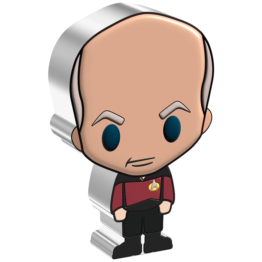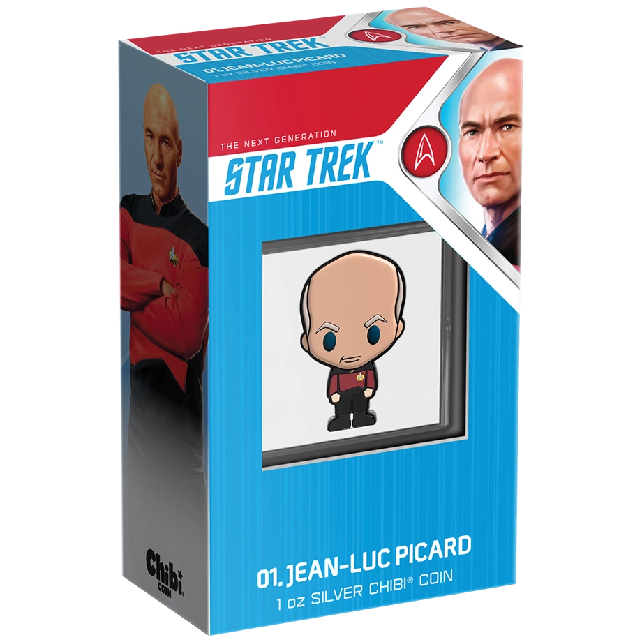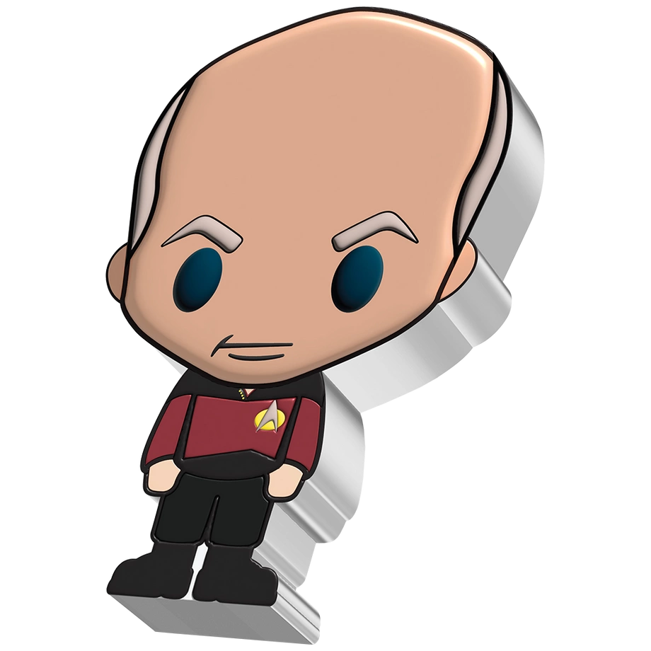 Jean-Luc Picard Chibi Coin kolorowany 1 uncja Srebra 2022 Proof to emisja z serii Star Trek – Chibi Coins. Projekt oddaje hołd postaci kapitana Jean-Luca Picarda w charakterystycznej stylistyce Chibi, z dużą głową i proporcjonalnie mniejszym ciałem, co nadaje całości urokliwy i przyjazny wygląd. Monetę wybito z jednej uncji srebra próby 99,9% w jakości proof przez New Zealand Mint. Nakład ograniczono do 2 000 sztuk na świecie, a każdy egzemplarz dostarczany jest w oryginalnym opakowaniu wraz z certyfikatem autentyczności.