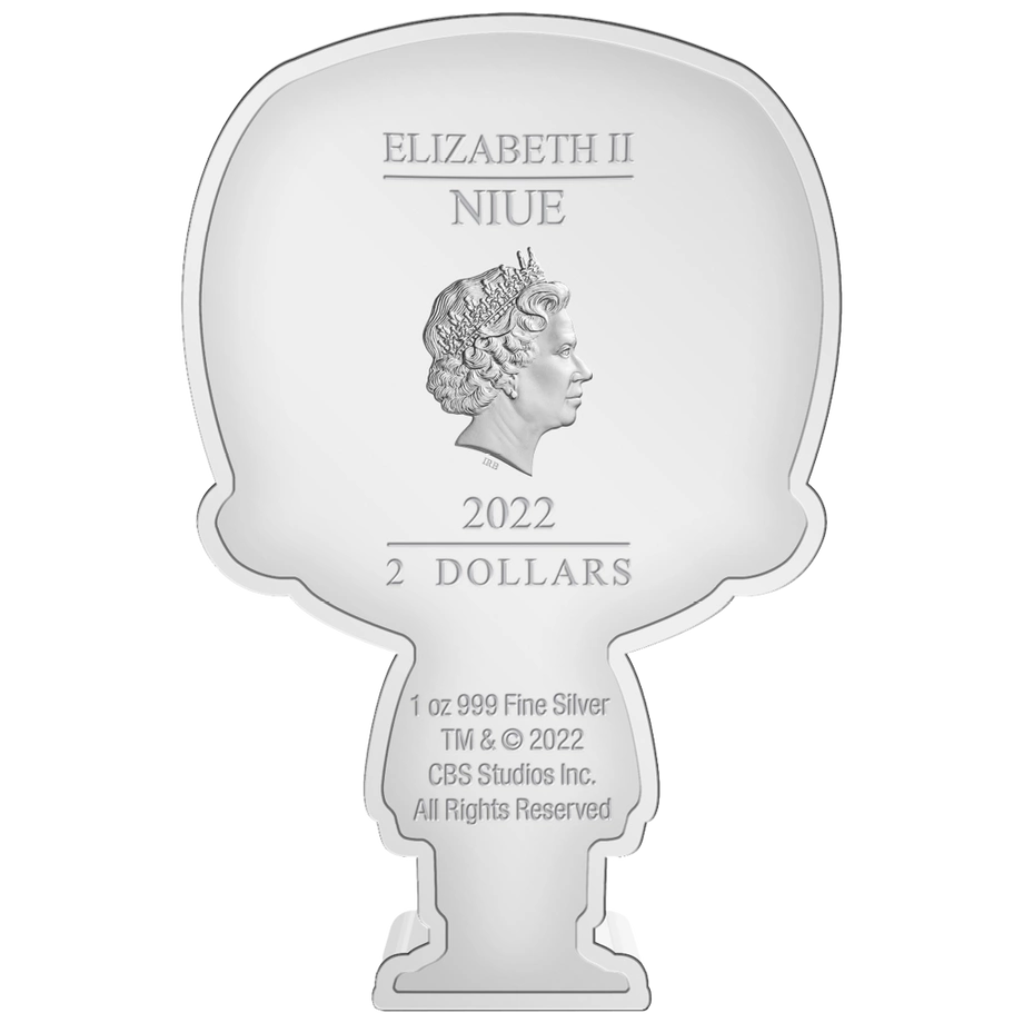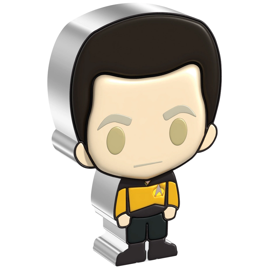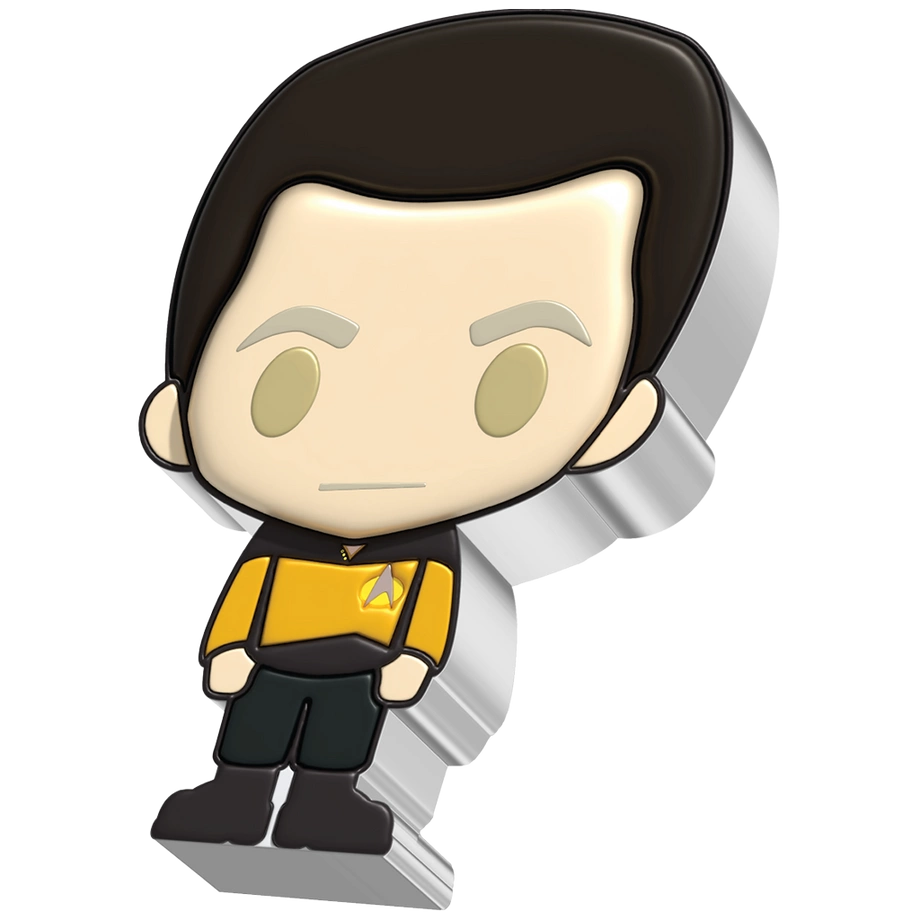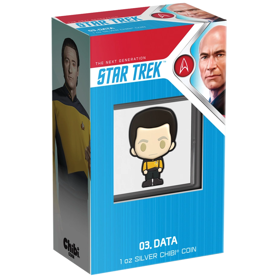 Data Chibi Coin kolorowany 1 uncja Srebra 2022 Proof to emisja należąca do kolekcji Star Trek – Chibi Coins. Numizmat oddaje hołd androidowi o imieniu Data, ukazanemu w estetyce Chibi, z proporcjonalnie dużą głową i niewielkim tułowiem, co nadaje mu wdzięczny, humorystyczny charakter. Moneta została wybita przez New Zealand Mint z jednej uncji srebra próby 99,9% w standardzie proof. Nakład jest ściśle limitowany do 2 000 egzemplarzy na świecie; każdy egzemplarz dostarczany jest w oryginalnym opakowaniu razem z certyfikatem autentyczności.