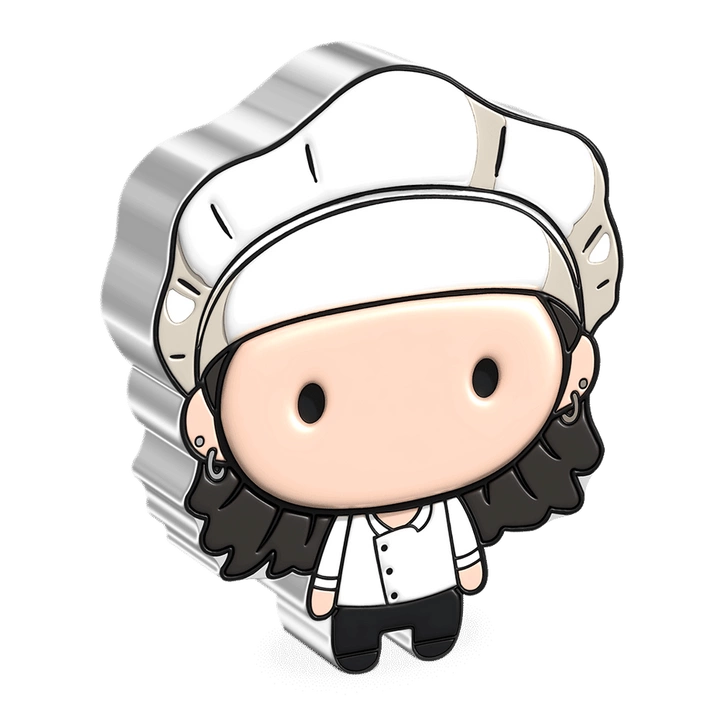 Monica Chibi Coin kolorowany 1 uncja Srebra 2022 Proof to moneta z serii Friends – Chibi Coins. Ukazuje Monikę w typowej stylistyce chibi, z dużą głową i proporcjonalnie mniejszym ciałem, co nadaje wizerunkowi uroczy, zabawny charakter. Moneta została wybita z jednej uncji 99,9% srebra w jakości proof przez New Zealand Mint. Emisję ograniczono do 2 000 sztuk na całym świecie, a każdy egzemplarz dostarczany jest w oryginalnym pudełku z dołączonym certyfikatem autentyczności.