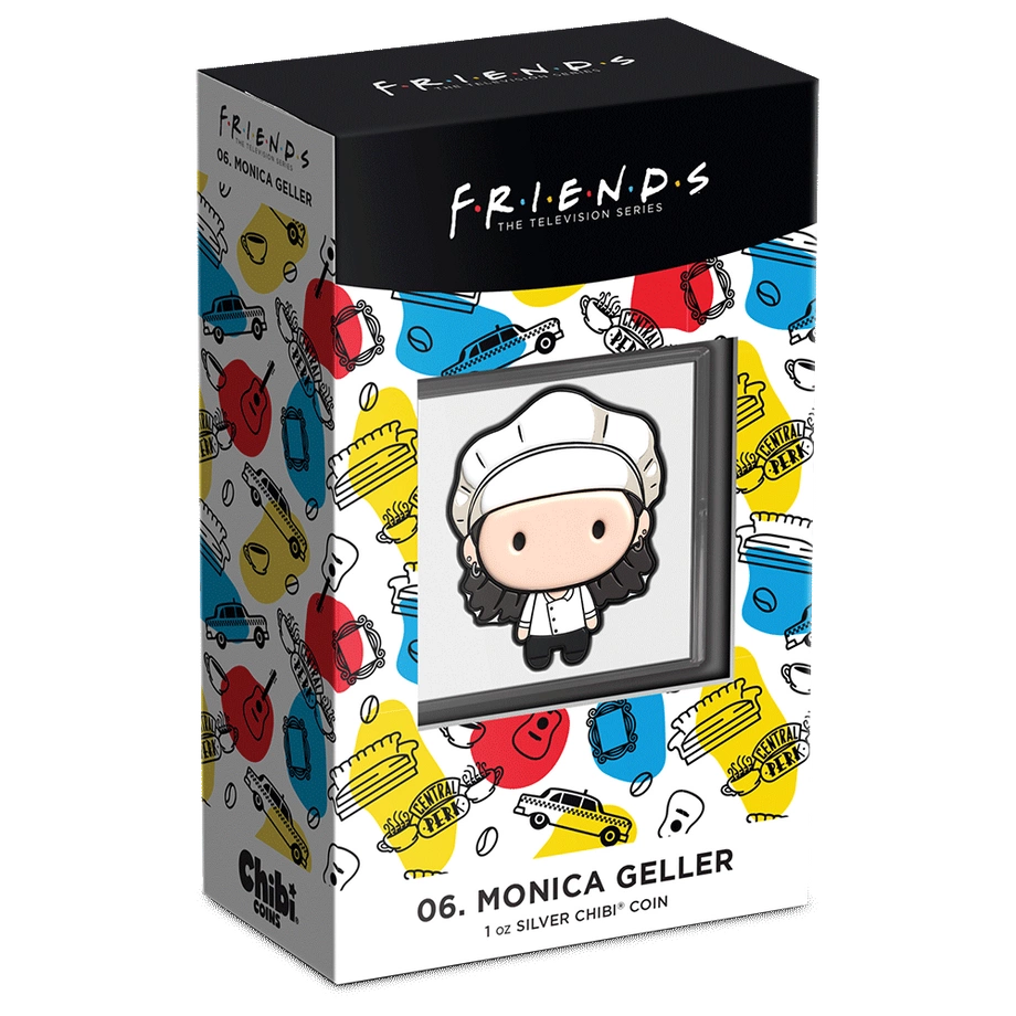 Seria Friends przedstawia losy grupy przyjaciół z Nowego Jorku, ich codzienne perypetie, miłość i przyjaźń. Monica, słynąca z perfekcjonizmu, zamiłowania do porządku oraz talentu kulinarnego, należy do najbardziej rozpoznawalnych bohaterek serialu. Moneta Chibi pozwala kolekcjonerom i fanom w nowatorski, lekki sposób uczcić tę ikoniczną postać.
