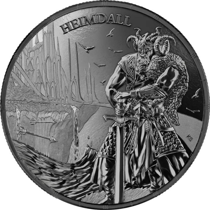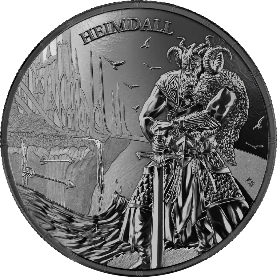 Ragnarök: Heimdall 1 uncja Srebra 2025 (Black Silver) to drugi numizmat z serii Ragnarök tworzonej przez Germania Mint. Cykl przenosi kolekcjonerów w realia mitologicznego końca świata (zmierzchu bogów), gdzie dotychczasowy porządek ulega odwróceniu, a spory między bohaterami nordyckiego panteonu nabierają dramatycznego wymiaru. Moneta wybita w czystym srebrze Ag .9999 z efektem Black Silver wyróżnia się znakomitą jakością wykonania i ograniczonym nakładem, dzięki czemu stanowi ceniony walor kolekcjonerski.