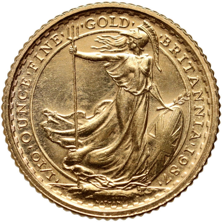 Britannia 1/10 uncji Złota 1987 to kultowa moneta łącząca walory inwestycyjne i kolekcjonerskie, wywodząca się z prestiżowej serii The Royal Mint. Wykonana z 22‑karatowego złota (próba 916,7) i o masie 3,41 g, jest wysoko ceniona przez kolekcjonerów oraz inwestorów za brytyjską tradycję menniczą i jej elegancki, ponadczasowy charakter.