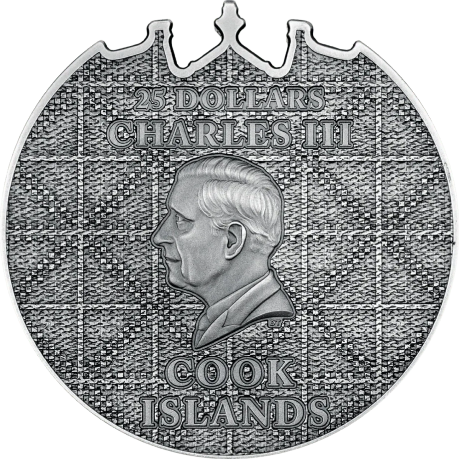 Moneta wybita została z 5 uncji czystego srebra próby 9999, ma średnicę 50 mm i otrzymała efektowne wykończenie Antique Finish uzupełnione kolorowaniem. Nominał wynosi 25 dolarów Wysp Cooka, a limitacja do 500 egzemplarzy podkreśla jej ekskluzywny charakter oraz wartość dla kolekcjonerów.