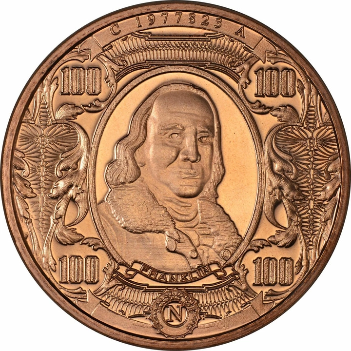 $100 Banknote 1 uncja Miedzi to medal nawiązujący do ikonicznego wzoru amerykańskiego banknotu o tym samym nominale, powszechnie kojarzonego z podobizną Benjamina Franklina. Krążek wykonany z 1 uncji czystej miedzi próby .999 przyciąga uwagę kolekcjonerów zarówno swoim historycznym charakterem, jak i solidnym rzemiosłem. Dzięki dużej rozpoznawalności pierwowzoru stanowi wartościowe uzupełnienie kolekcji tematycznych, zwłaszcza poświęconych ikonografii amerykańskiej waluty.