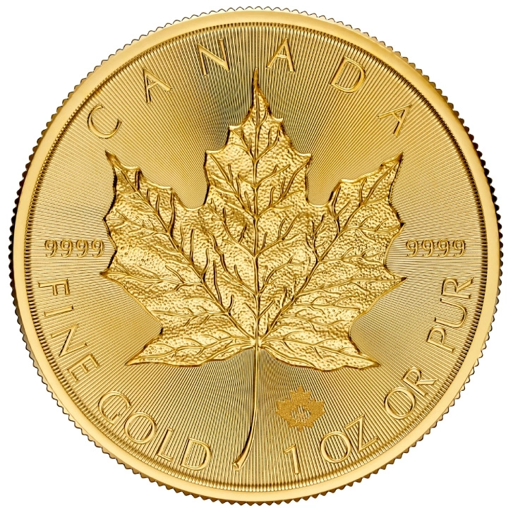 Rewers: Ukazuje klasyczny liść klonowy — narodowy symbol Kanady zaprojektowany przez Waltera Otto. Na powierzchni monety widnieją oznaczenia masy i czystości złota, potwierdzające najwyższy standard próby Au 9999.