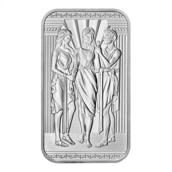 Srebrna sztabka The Great Engravers - Three Graces 1 uncja Srebra 2022 to kolekcjonerski egzemplarz będący reedycją waloru o nazwie Three Graces, autorstwa Williama Wyona RA z 1817 roku. Co ciekawe, Wyona był rzemieślnikiem menniczym w mennicy The Royal Mint w XIX wieku. Projektant Daniel Thorne podjął się przygotowania waloru w odświeżonej formie, jednocześnie oddając hołd pierwowzorowi. Produkt nakierowany jest do nowych grup odbiorców pragnących zgłębić temat historii bicia monety oraz inwestorów i kolekcjonerów metali szlachetnych. Produkt pochodzi z serii The Great Engravers.