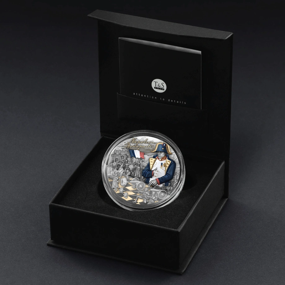 Srebrna moneta kolekcjonerska oddaje klimat epoki oraz osobowość Bonapartego poprzez głęboki relief, selektywne pozłocenie i wykończenie w stylu antiqued. To ukłon w stronę dyscypliny, odwagi i konsekwencji w dążeniu do celu, podkreślający, że autentyczna wielkość rodzi się z wytrwałości, a nie z przypadku.