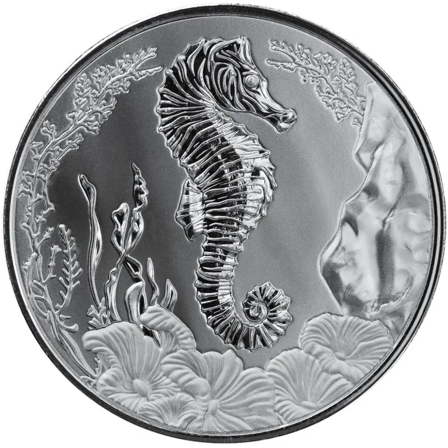 Samoa: Seahorse 1 uncja Srebra 2025 to wysokiej jakości srebrna moneta o próbie .999, stanowiąca część popularnej serii z motywem konika morskiego. Wybita z jednej uncji czystego srebra, łączy walory artystyczne z wartością inwestycyjną.