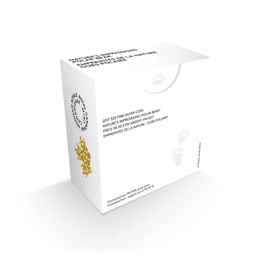Nature’s Impressions: Niedźwiedź Polarny 1 uncja Srebra 2017 Proof to druga emisja z renomowanej kanadyjskiej serii Nature’s Impressions, przygotowanej przez Royal Canadian Mint. Cykl ten słynie z innowacyjnego podejścia do projektu monety, łączącego klasyczne rzemiosło mennicze z rozwiązaniami, które dosłownie „wykraczają poza krawędź” tradycyjnej kompozycji.