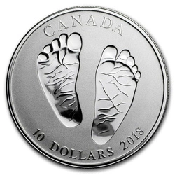 Rewers: Na rewersie monety umieszczono subtelny wizerunek małych stópek dziecka, który symbolizuje nowe życie i początek rodzinnej historii. Dodatkowo, na tej stronie znajduje się nominał 10 dolarów, podkreślający oficjalny status monety.