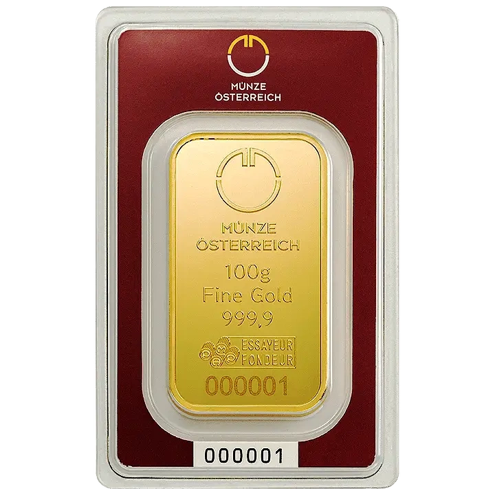 Austrian Mint Sztabka 100 gramów Złota
