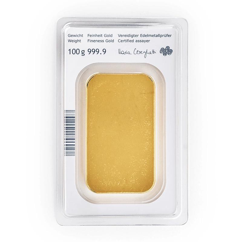 Złota sztabka pochodząca od renomowanego producenta metali szlachetnych Austrian Mint to 100 gramowy produkt inwestycyjny, idealnie nadający się do dywersyfikacji portfolio. Złota sztabka została wyprodukowana z czystego kruszcu próby 999.9 oraz znajduję się w certyfikowanym zabezpieczeniu - CertiPack. Warto dodać, iż emitent złotej sztaby posiada akredytację LBMA, dzięki czemu zapewnia swoim produktom najwyższą możliwą gwarancję jakości.