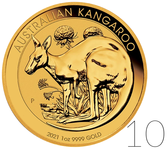 10x Australijski Kangur 1 uncja Złota 2021Cena: 16 644,07 zł / szt.