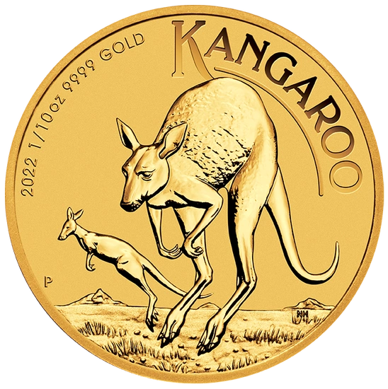 Złota moneta bulionowa Australijski Kangur to produkt szczególnie polecany inwestorom, chcącym zabezpieczyć swój kapitał. Jest to walor bity z czystego złota, próby Au.9999 o wadze 1/10 uncji trojańskiej. Jego producentem jest renomowana australijska mennica – Perth Mint. Podkreśleniem wartości lokacyjnej złotego Kangura jest fakt, iż posiada gwarancję rządu Australii oraz stanowi pełnoprawny środek płatniczy na terenie kraju emitenta.