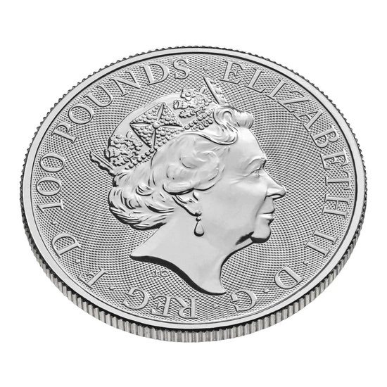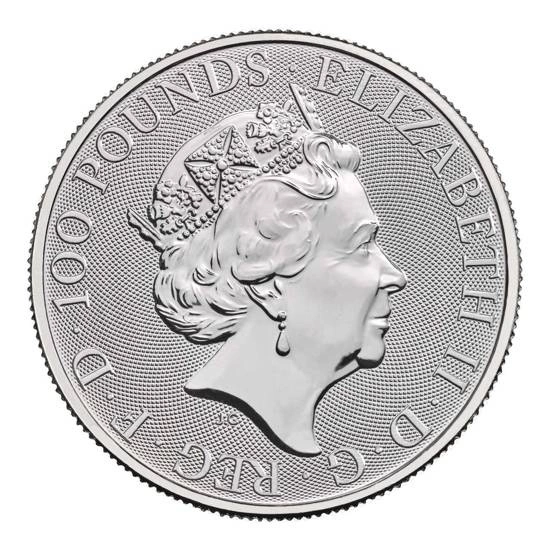 Rewers przedstawia 10 Bestii Królowej, do których należą: The Lion of England, The Griffin of Edward III, The Red Dragon of Wales, The Unicorn of Scotland, The Black Bull of Clarence, The Falcon of the Plantagenets, The Yale of Beaufort, The White Lion of Mortimer, The White Horse of Hanover, The White Greyhound of Richmond. Ponadto, na rewersie znajduje się informacja o dacie emisji, wadze i czystości kruszcu.