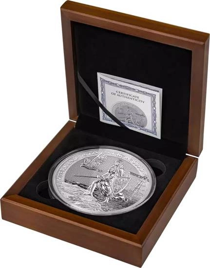 Srebrna moneta została wybita z czystego kruszcu próby Ag.9999, o wadze 1000 gramów oraz średnicy liczącej 100mm. Nakład monety wynosi 100 sztuk. Walor został wykonany przez Germania Mint. Produkt został umieszczony w oryginalnym, drewnianym opakowaniu wraz z certyfikatem autentyczności.