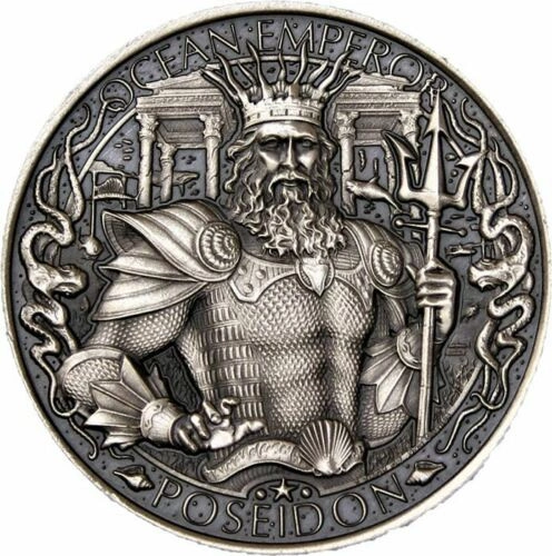 Rewers ukazuje greckiego boga Posejdona w koronie, który trzyma swój tradycyjny trójząb oraz napisy: "POSEIDON", "OCEAN EMPEROR".